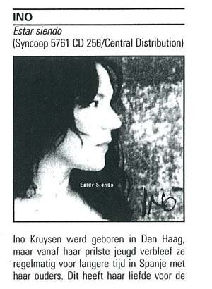 Op " Estar Siendo" heeft zij 12 zogeheten canciones van diverse componisten uit Latijns Amerika samengebracht. Dat heeft een perfecte sfeerplaat opgeleverd die aantoont dat Ino in haar