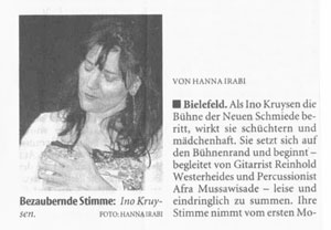 Als Ino Kruysen die Bühne der Neuen Schmiede betritt, wirkt sie schüchtern und mädchenhaft. Sie setzt sich auf den Bühnenrand und beginnt - begleitet von Gitarrist Reinhold